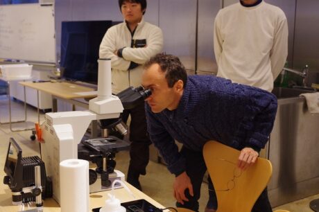 より高度な応用編として、プレパラート標本づくりと生物顕微鏡での観察も行いました。