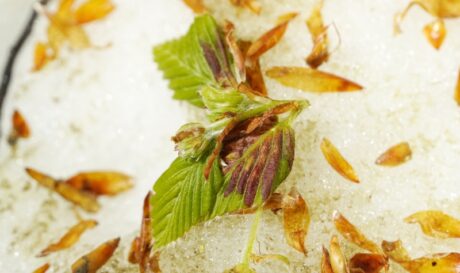 ブナの冬芽を覆っていた「芽鱗(がりん)」が池の水面を覆っています。