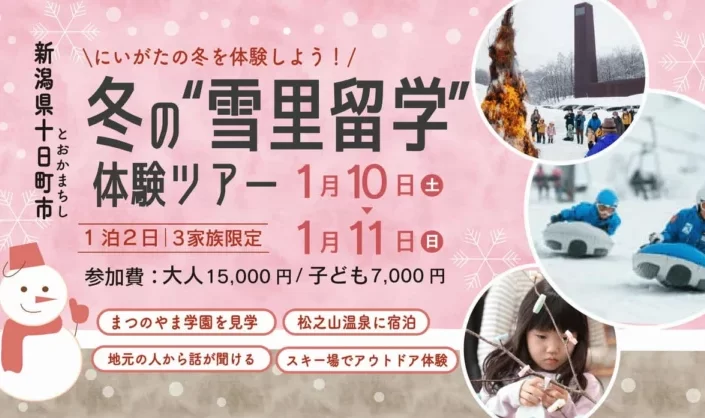 松之山自治振興会では、令和8年1月10日(土)~1月11日(日)の1泊2日で冬の雪里留学体験ツアーを実施いたします。