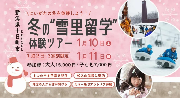 <受付は終了致しました ご応募ありがとうございました> 松之山自治振興会では、令和8年1月10日(土)~1月11日(日)の1泊2日で冬の雪里留学体験ツアーを実施いたします。 参加申し込み(応募)については、専用応募フォー […]
