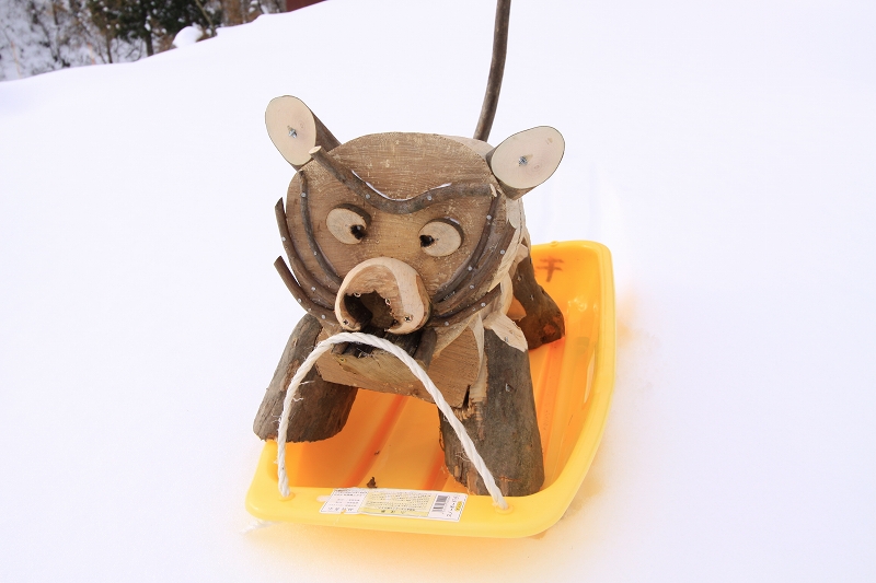 写真は、ソリに乗って雪原を駆け下るトラ君です。一善さんの新作!