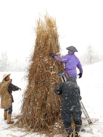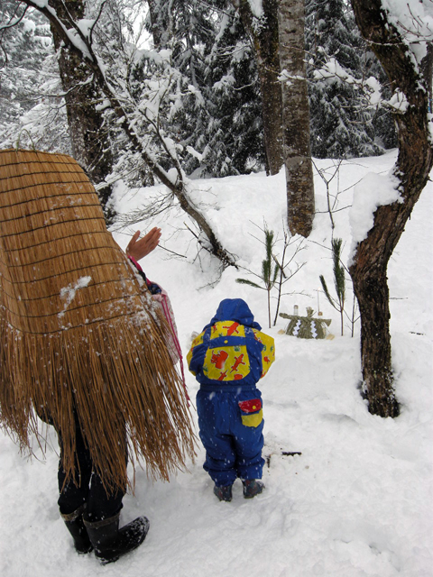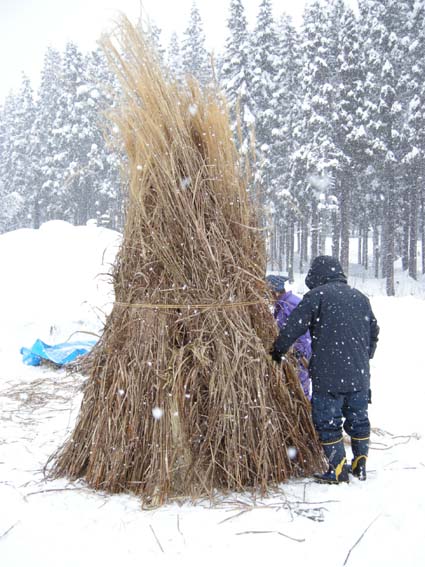 日曜日, 1月 10th, 2010本日、「若木迎え」を開催しました。若木迎えとは約40年ほど前まで松之山の各集落で行われていた行事で、一年間の山仕事の安全や健康を祈願する神事だそうです。