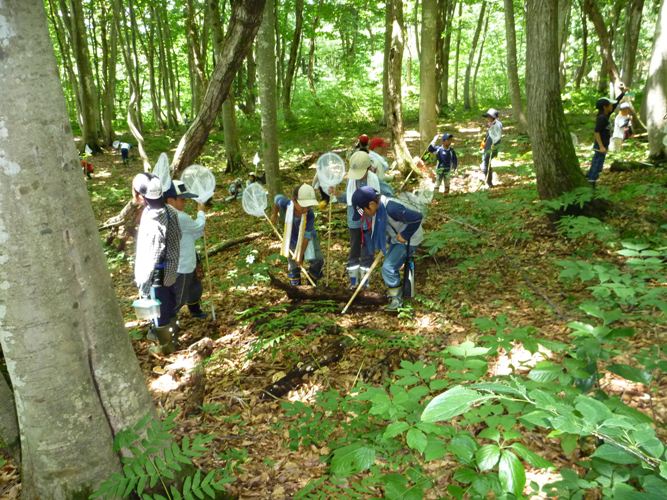 十日町市中条地区のこどもたちがキョロロに里山探検に来てくれました。「虫」、「森」という希望で、キョロロ周辺の森にGO! クワガタ、カブト、セミ、バッタ、カエルとたくさん採れみんな満足気でした。