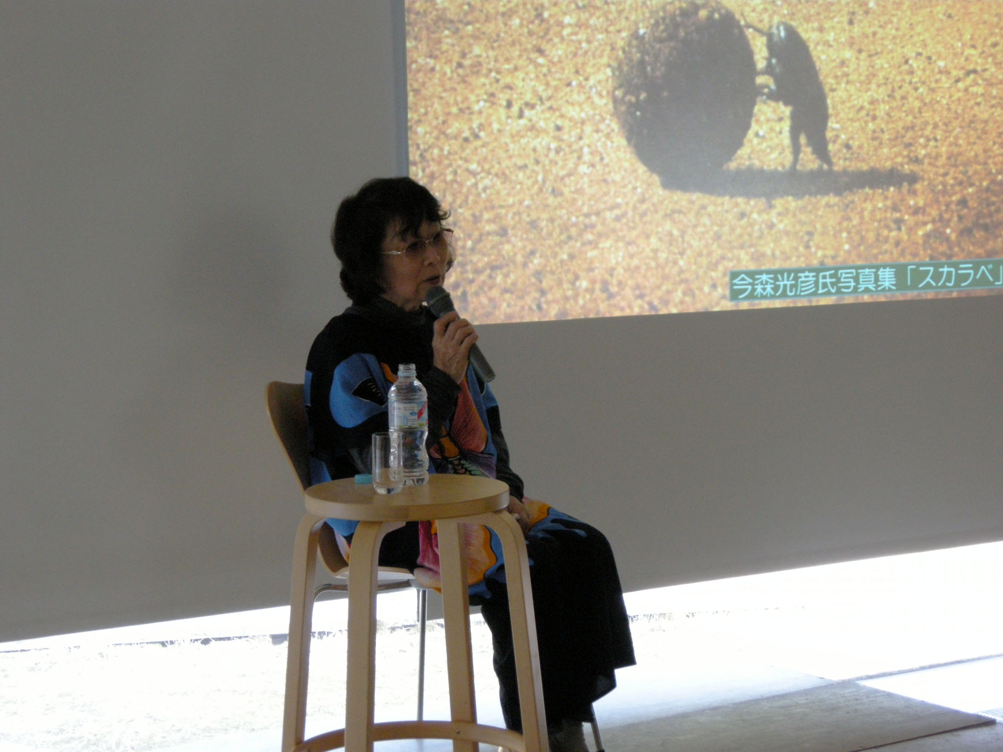 語りを行っていただいた伊藤しのぶさんです。冗談を織り交ぜながら、昆虫記の一節「神聖な糞虫」を語って行きます。