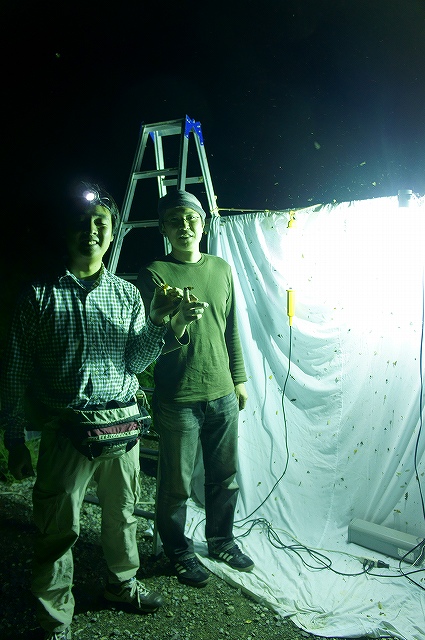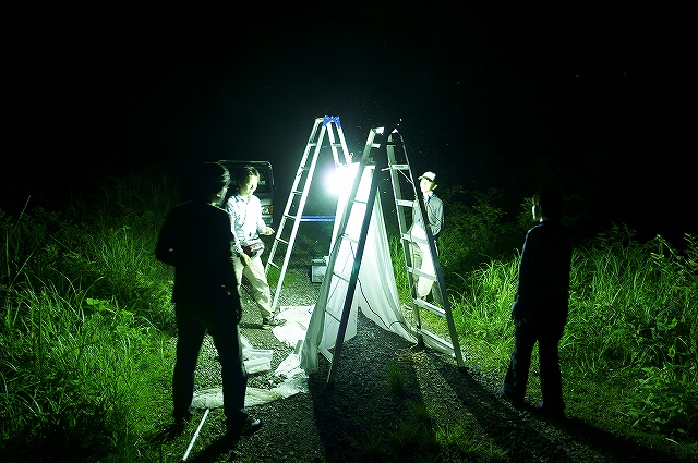 昨日、今回参加されるアーティストさんの1人、樋口明宏さんとキョロロ研究員とで、作品に使用する蛾の採集を行いました。