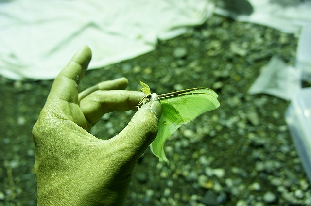 今回の採集のターゲットの一つ、オオミズアオです。