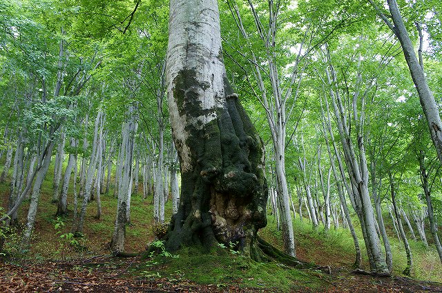 カメラマンの方にも人気の高い、天水越のブナ林のシンボル的なブナの木です。
