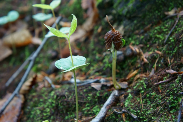 地面いっぱいのブナの芽生えが。