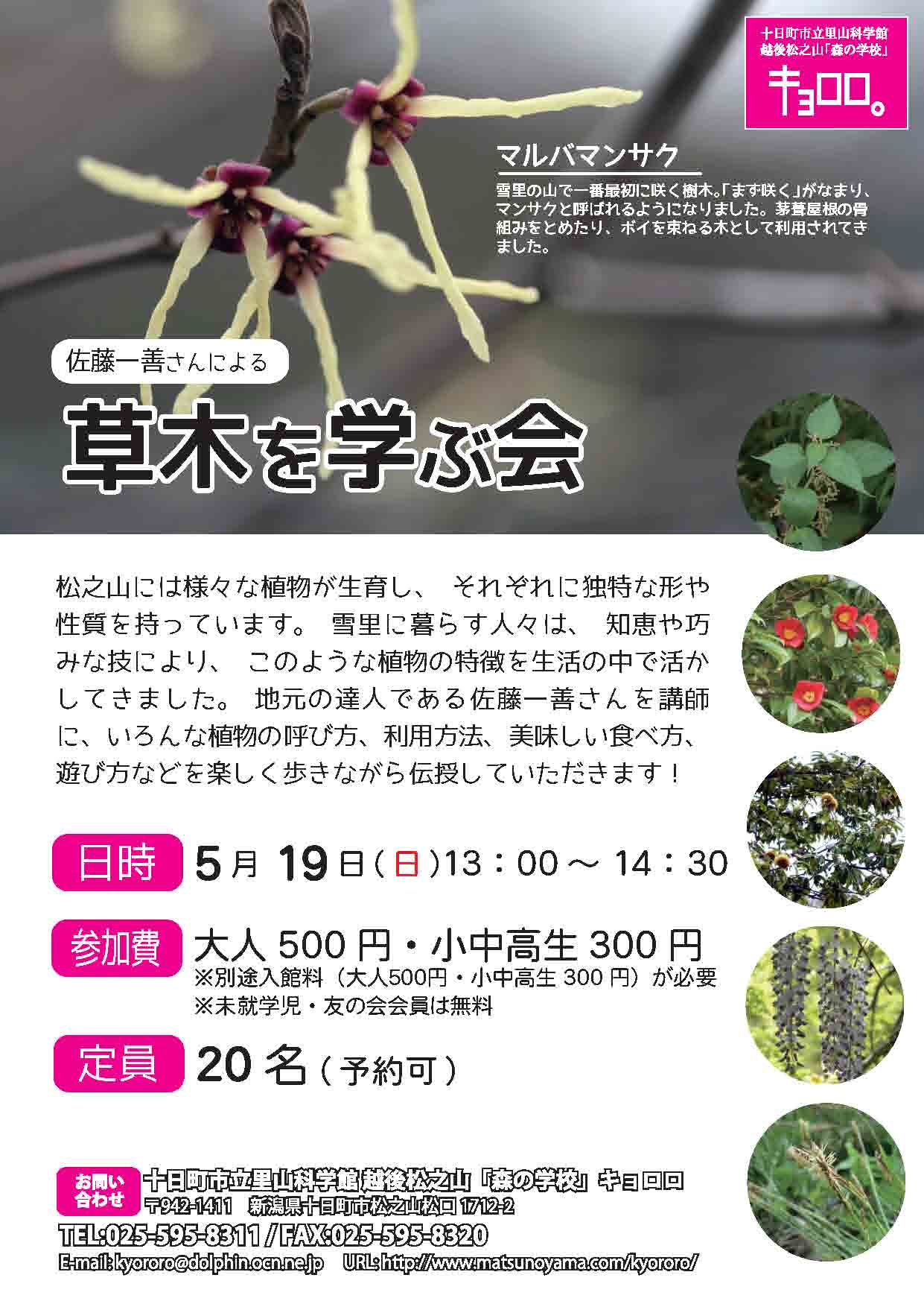 キョロロでは5/19(日)13:00~14:30に、地元の佐藤一善さんを講師に、