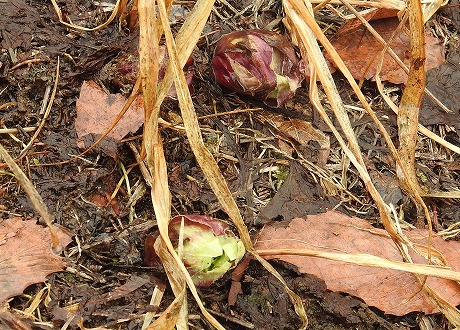 あちこちの雪の消え際にはフキノトウが顔を出しています。