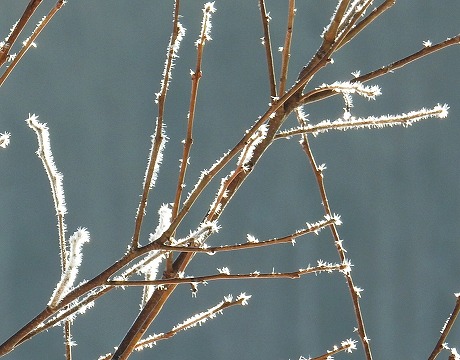 夜間の冷え込みでできた霧氷