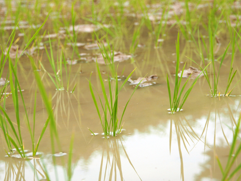 田植えが終わった田んぼは、1ヶ月ほどでヒエなどの草が伸びてきます。