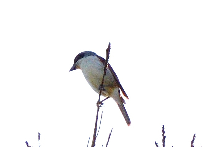 探鳥会終了時の取り合わせの時、いきなり頭上でチゴモズが鳴きだしました。皆さんにお礼のあいさつに出てきたかのようでした。鳥合わせでは出現種数は48種でしたが、会員の写真にノゴマが記録されていました。その結果出現種数は49種となりました。