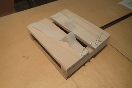 木材を組み合わせてつくったお手製の展翅台を使って、チョウを展翅!