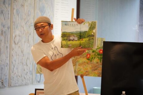 土曜日, 7月 1st, 2023今回で3回目となった舘野鴻さんのトークショーです。春季企画展「舘野鴻絵本原画展 うまれて しんで、-めぐる命のものがたり-」のスペシャル企画の第3弾です。第1弾では筑波大学の出川洋介先生をお招きし、第2弾では北海道大学所属・昆虫はかせネットワーク代表の鈴木誠治さんをゲストにお招きしました。そして今回は、福島大学の兼子伸吾先生をお招きしました。兼子先生は大平研究員の師匠で、保全生態学・分子生態学がご専門です。絶滅危惧の植物や、咲かない植物、光合成をやめた植物、シカやイノシシなどの哺乳類、ナナフシやカニムシなどの節足動物、ナメコなどの菌類…等々、様々な生き物のDNAを調べて研究されています。