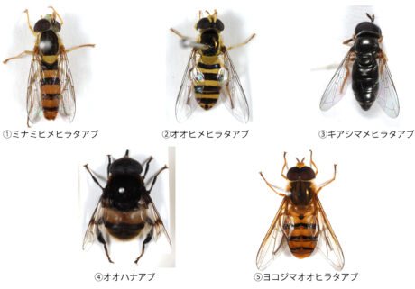 祝 輝男(1997)季節によって模様替え!鹿児島市2地点におけるホソヒラタアブの色彩変異について.はなあぶ 3: 9-13.