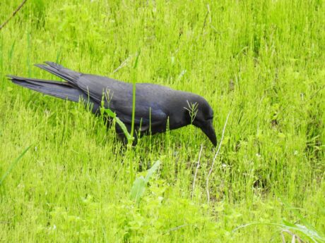 ▲ 虫を蒸しをついばんでいるハシボソガラス