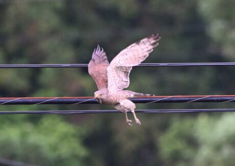 確認できた鳥(25種):キジバト、アオサギ、ノスリ、ホトトギス、カッコウ、コチドリ、ノスリ、コゲラ、アオゲラ、サンショウクイ、ハシボソガラス、ヤマガラ、ヒガラ、シジュウカラ、ツバメ、ヒヨドリ、ウグイス、エナガ、メジロ、ムクドリ、スズメ、キセキレイ、ハクセキレイ、イカル、ホオジロ