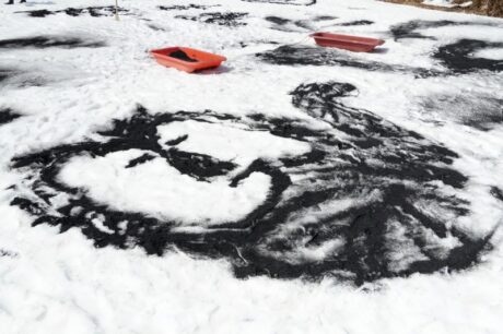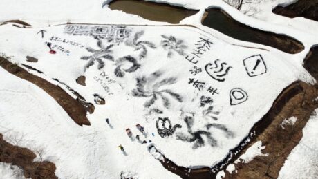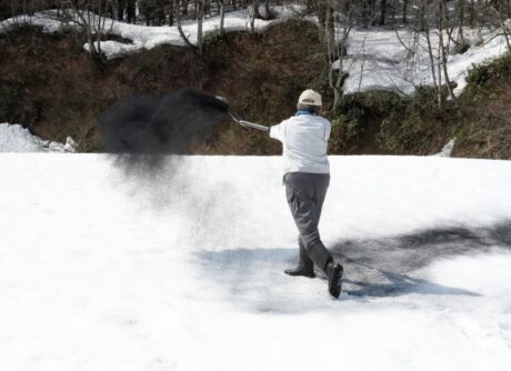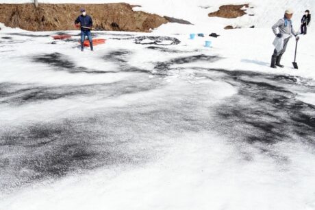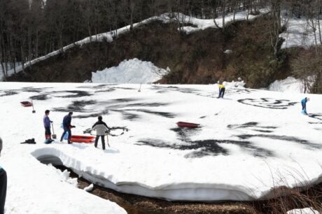 3mあった雪は徐々に解け、建物や道路の周り、木の根もとなどは地面が見え始めています。しかしまだまだ森の中は雪一色。