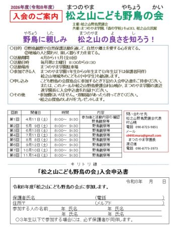 令和8年度2026年度松之山こども野鳥の会入会案内書