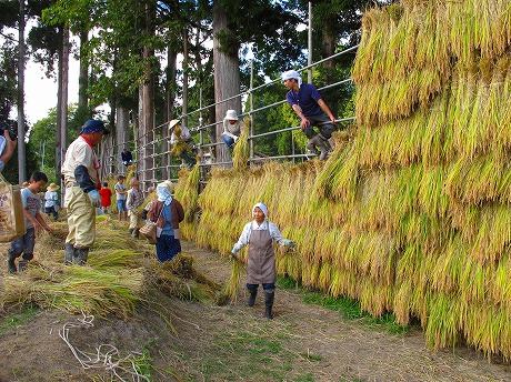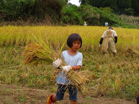小さい子どもも稲運びを一生懸命手伝いました。